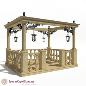 • Беседка из натурального камня в стиле антик (открытый верх),Известняк Сары — Таш